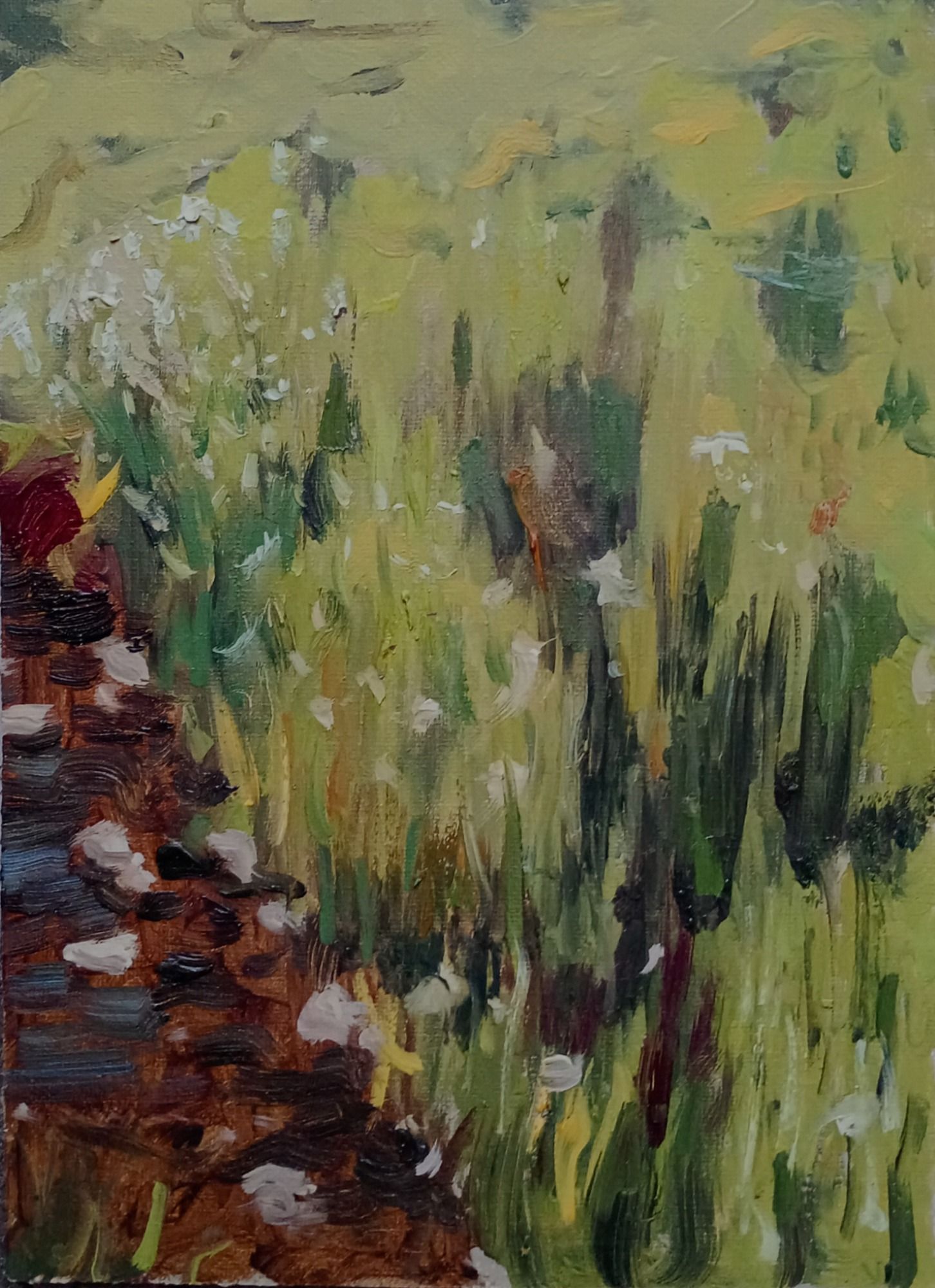 Plein Air Skizze an der Vechte, 2022, Öl auf Malpappe