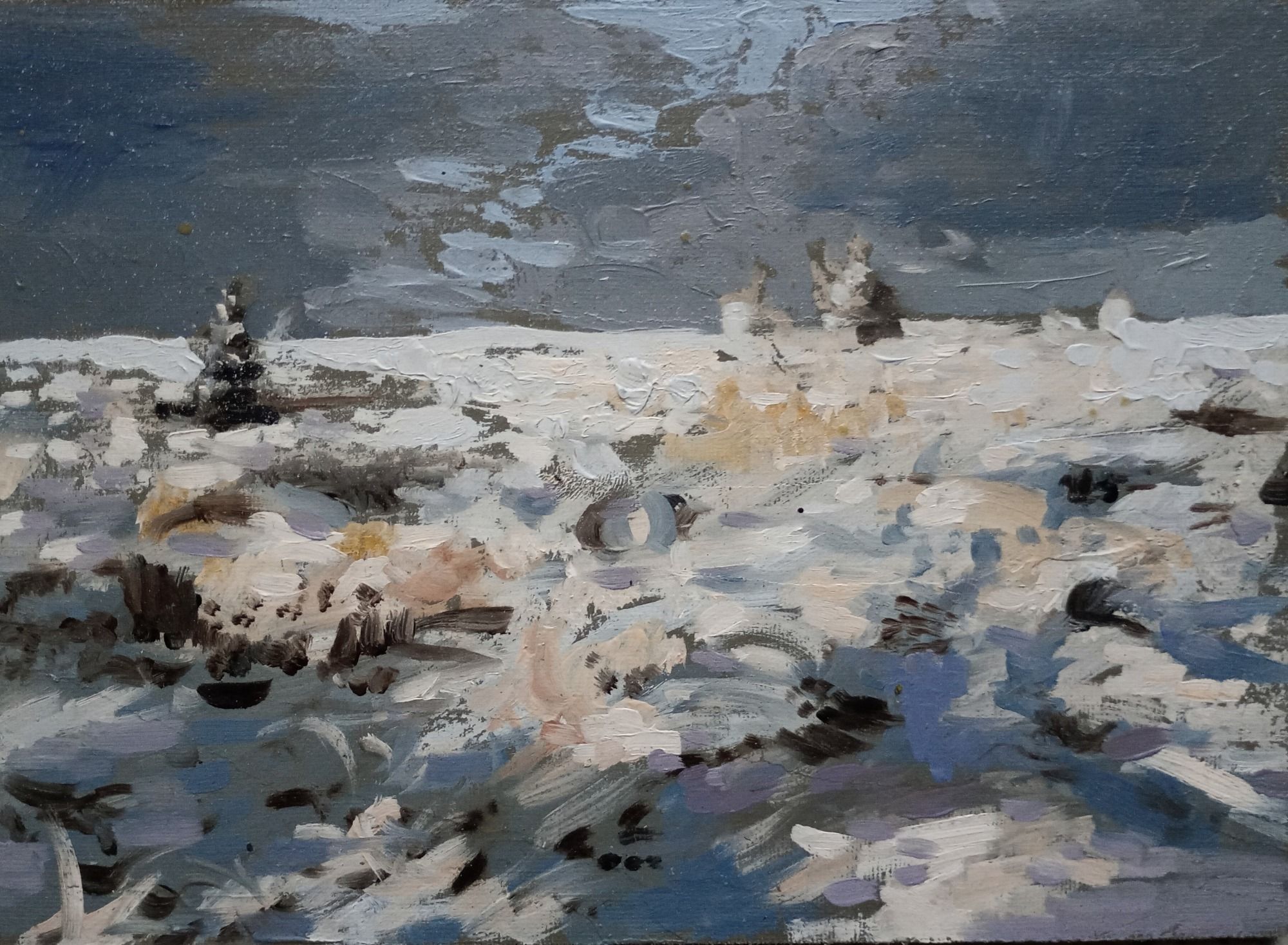 Vechteskizze nr.1, Öl auf Sperrholz, ca. 15x20cm